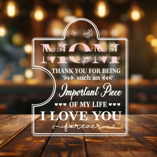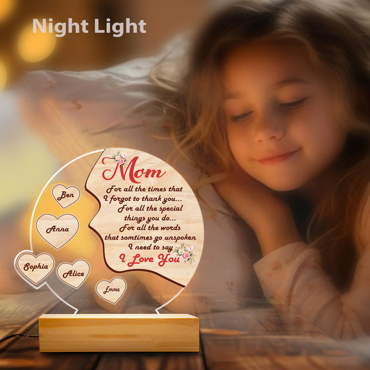 Acrylic Mom Night Light – Emotional Gift from Daughter with Message “For All the Times I Forgot to Thank You” – Keepsake of Love and Gratitude (MNL-02)