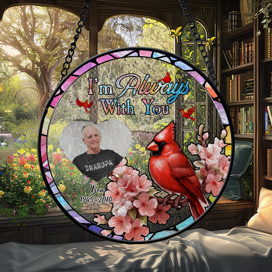 Cardinal Remembrance Glass Suncatcher – Custom Photo Memorial Hanging Sign for Loss of Loved One (Sun-96)