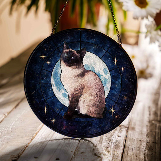 Cat Glass Ornaments, Paradise Cat Window Ornaments, Stained Glass Moon and Star Ornaments, Gifts for Cat Lovers (Sun-107)