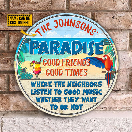 Beach Parrot Paradise Good Music, Beach House, Outdoor Bar Decor, Custom Wood Circle Sign