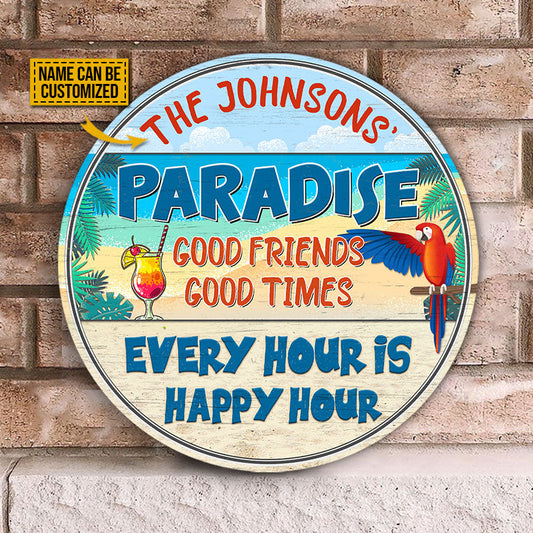 Beach Parrot Paradise Happy Hour, Beach House, Outdoor Bar Decor, Custom Wood Circle Sign