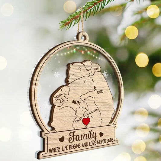 Bear Family Will Always Be Connected By Heart - Personalized 2-Layered Mix Ornament