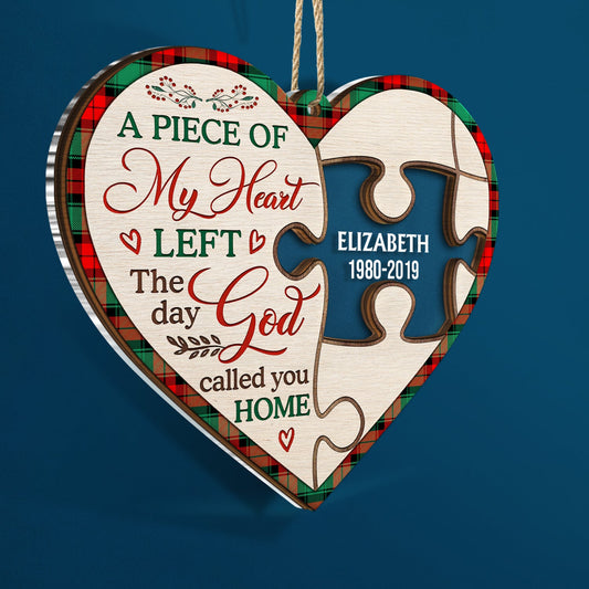 A Piece Of My Heart Left The Day God Call You Home - Memorial, Christmas Gift For Family - Personalized 2-Layered Mix Ornament