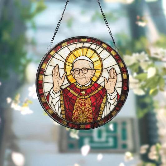 Catholic Pope Glass Suncatcher for Window, Stained Glass Style Hanging Decor, Religious Christian Gift for Home or Church Altar (Sun-118)
