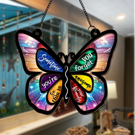 Butterfly Hanging Suncatcher – Colorful Stained Glass Effect Acrylic Decor for Windows, Walls, or Garden Spaces (H-Sun-16)