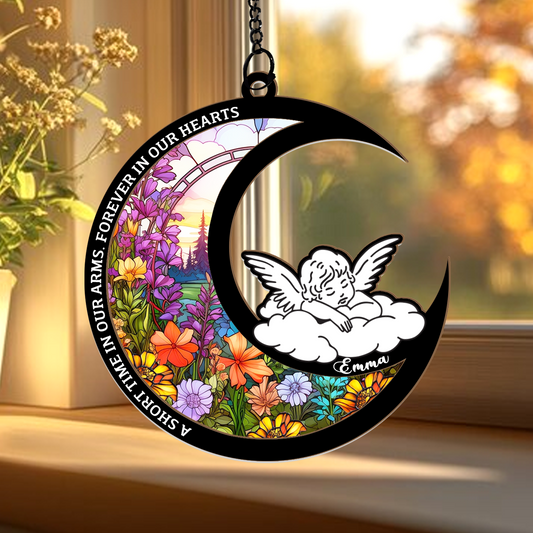 Personalized Baby Memorial Moon Ornament with Angel – Custom Keepsake for Infant Loss, Miscarriage, or Child Remembrance Gift (Sun-124)