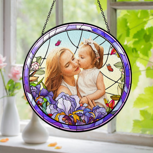 Personalized Mother And Child Portrait Faux - Personalized Stained Glass Suncatcher for Windows (Sun-04)