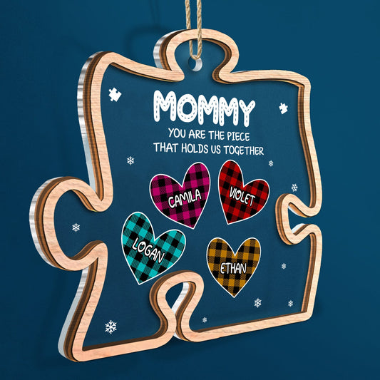 You Are The Piece That Holds Us Together - Christmas, Gift For Grandma, Grandpa, Mom, Dad - Personalized 2-Layered Mix Ornament