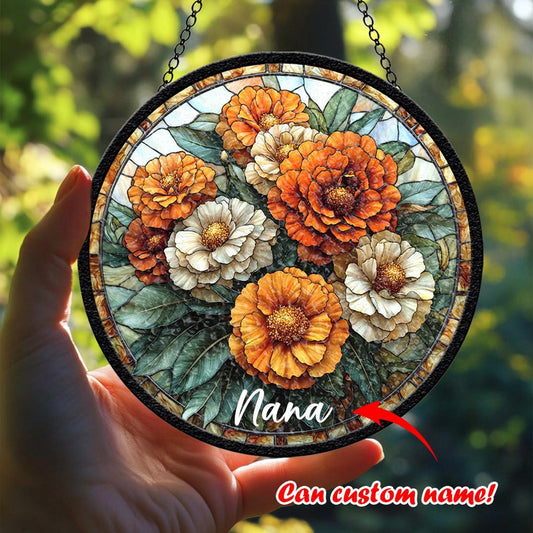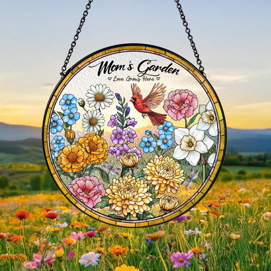 Custom Grandma Birth Flower Glass Suncatcher, Custom Family Birth Flowers Glass Art, Grandma Gift, Mother's Day Gift, Flower Gift For Mom (Sun-57)