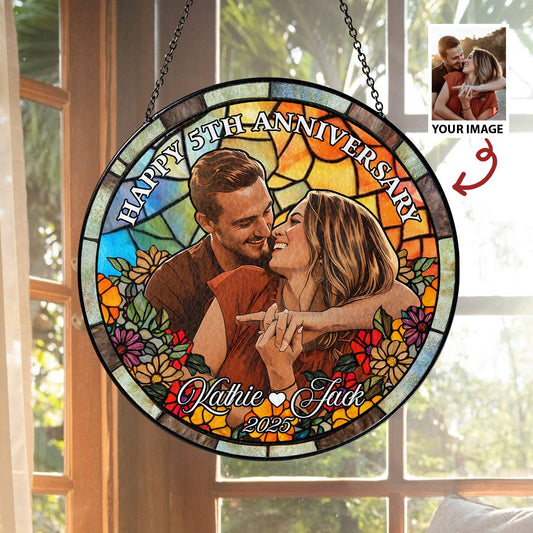 Custom Glass Suncatcher Couple Portrait – Personalized Stained Glass Style Art from Your Photo, Romantic Gift for Anniversaries or Birthdays (Sun-41)