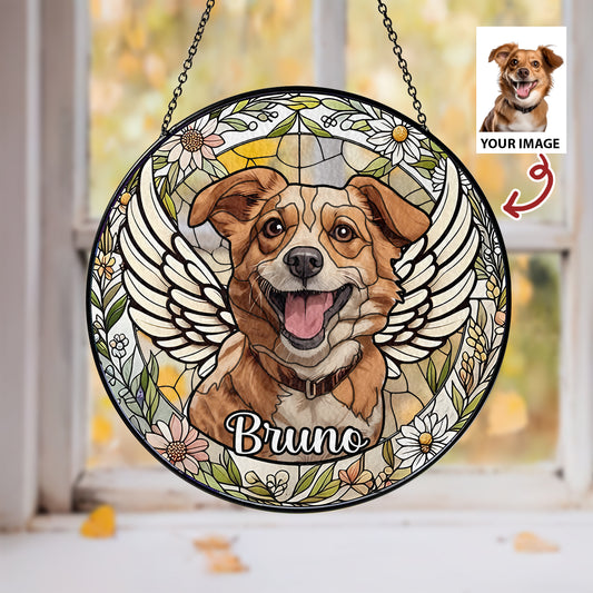 Custom Pet Portrait Hanging Suncatcher – Personalized Dog Memorial Gift from Photo, Pet Loss Keepsake, Stained Inspired Tribute (H-Sun-11)
