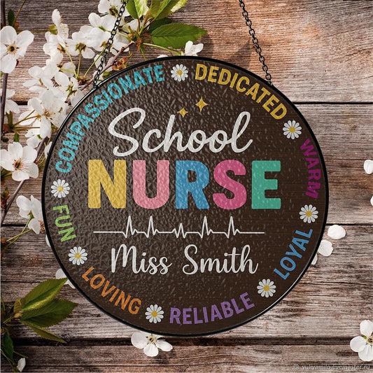 Custom School Nurse Stained Glass Window Sign, Teacher or Healthcare Staff Gift,Classroom, Hospital, or Nursery Decor, Perfect for Back to School or Appreciation Week (Sun-141)