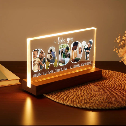 Daddy Night Light with Custom Photos, Personalized Acrylic Lamp for Father’s Day, Photo Collage Gift for Dad or Husband on Birthday (DNL-14)