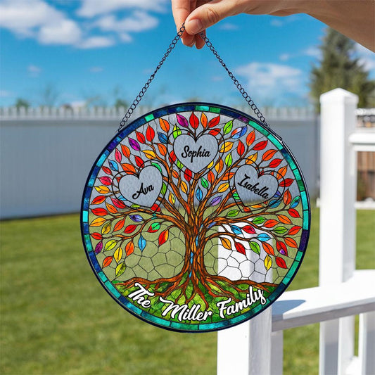 Custom Tree of Life Family Suncatcher, Family Stained Glass Ornament, Personalized Family Name Suncatcher, Family Keepsake (Sun-131)