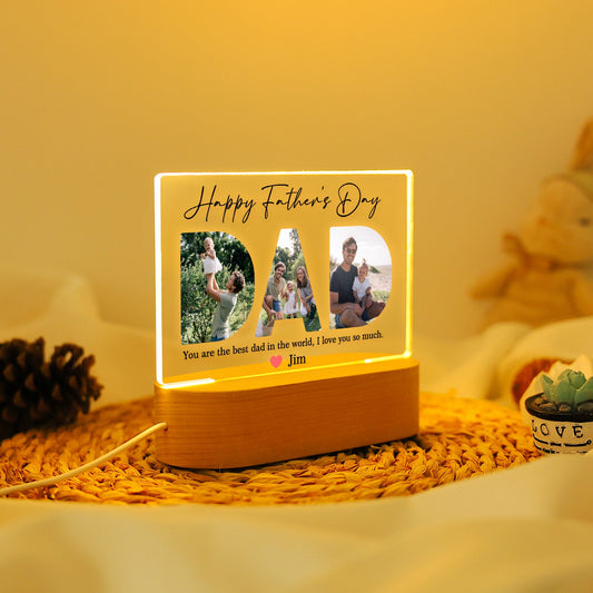 Personalized Dad Night Light with Photo Collage, Unique Gift for Father’s Day or Husband Birthday, Best Dad Gift from Daughter or Son (DNL-09)