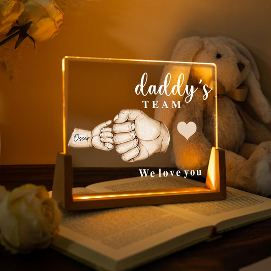 Personalized Dad Night Light, Family Fist Bump LED Lamp with Base, New Father Gift for Birthday or Father’s Day, Daddy’s Team Design (DNL-19)