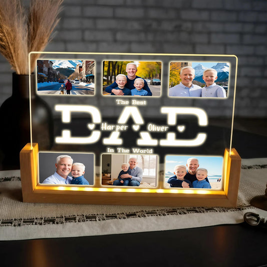 Custom Photo Dad Night Light, Personalized LED Plaque with Family Photo Collage and Kids’ Names, Unique Father’s Day or Birthday Gift for Dad (DNL-02)