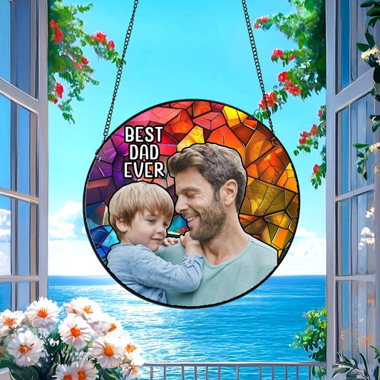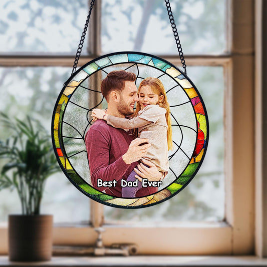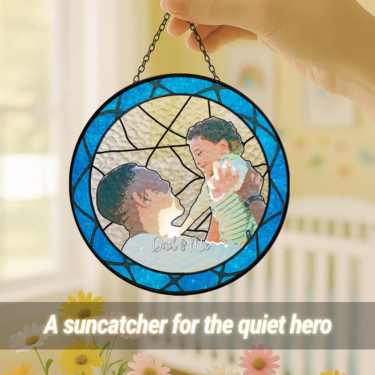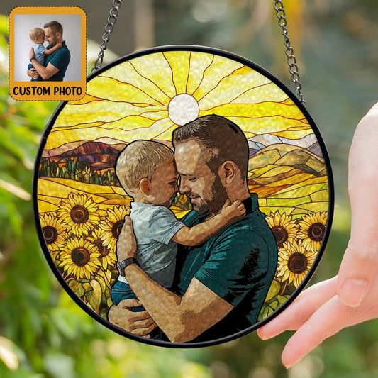 Fathers Day Glass Suncatcher, Custom Photo Stained Glass Gift for Grandpa, New Dad Gift, Custom Dad Photo Stained Glass Suncatcher, Dad Birthday (Sun-154)