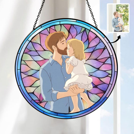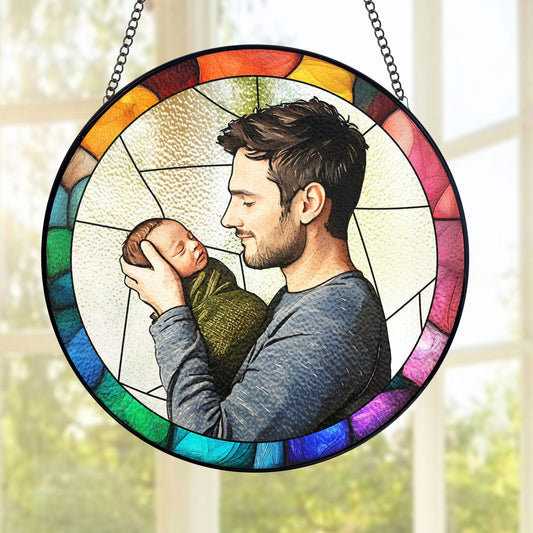Custom New Dad Portrait Glass Suncatcher, Personalized 1st Fathers Day Gift From Kid, Dad Birthday Gifts, Dad Suncatcher Window Hanging (Sun-157)