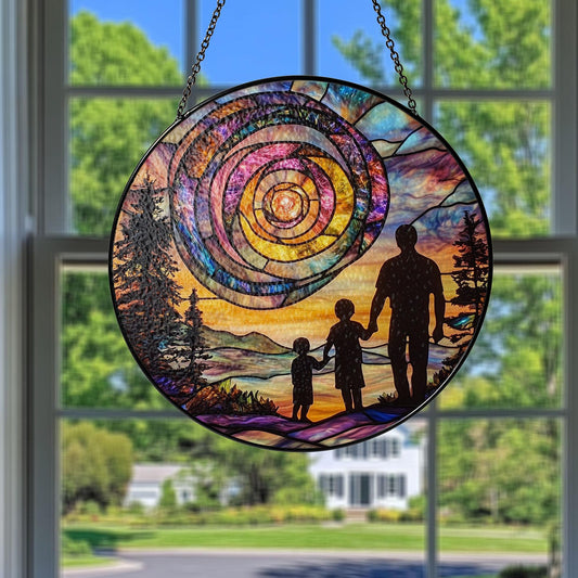 Dad and Kids Sunset Spiral Glass Suncatcher, Handmade Father’s Day Gift, Sentimental Keepsake from Children, Unique Gift for Him, Family Love Decor (Sun-148)