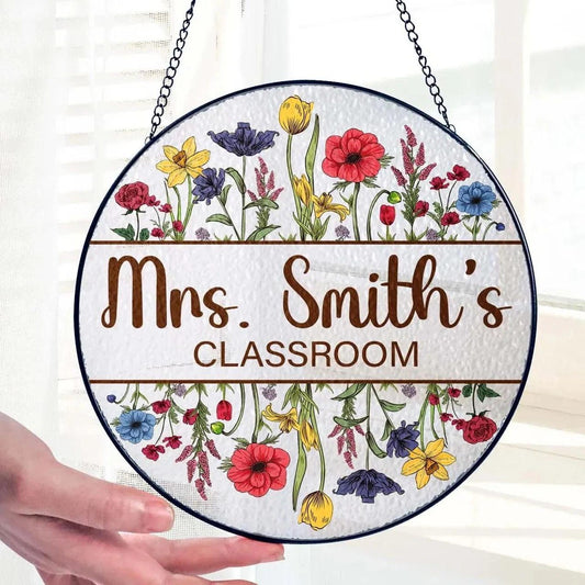 Custom Flower Teacher Stained Glass Suncatcher, Teacher Appreciation Gift From Student, Back To School, Window Hanging Classroom