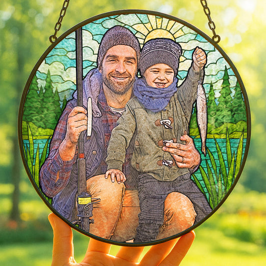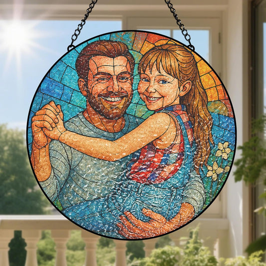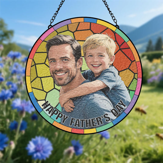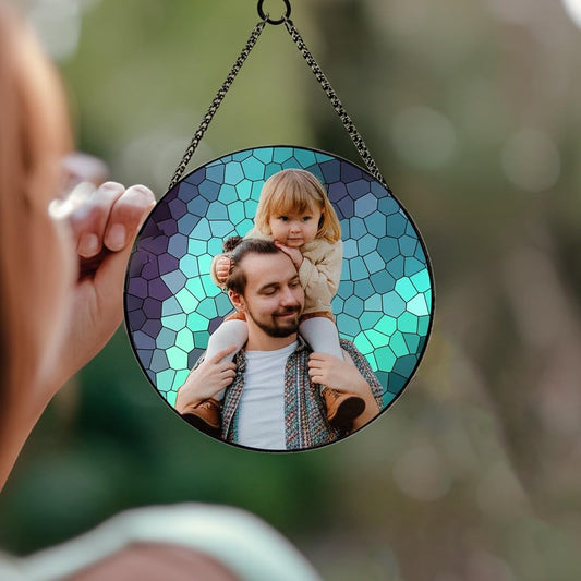 Father's Day Gift for Dad, Custom Photo Stained Glass Gift for Grandpa, New Dad Gift, Custom Dad Photo Stained Glass Suncatcher, Glass Suncatcher Dad Birthday (Sun-126)