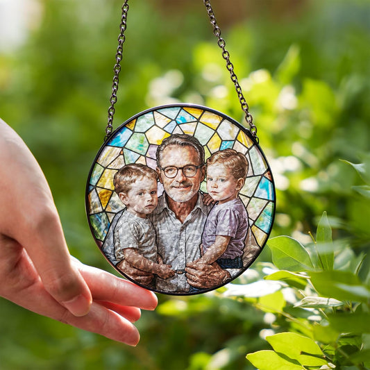 Custom Family Photo to Stained Glass Suncatcher – Unique Father’s Day Gift for Dad or Grandpa – Personalized Window Hanging from Children (Sun-142)