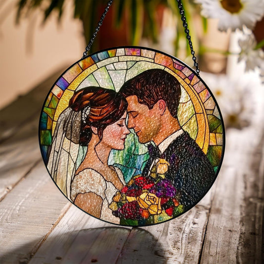 Custom Stained Glass Couples Portrait From Photo, Wedding Portrait Glass Suncatcher, Anniversary Gift, Valentine's Day Couple Gifts, Wedding Gifts (Sun-134)