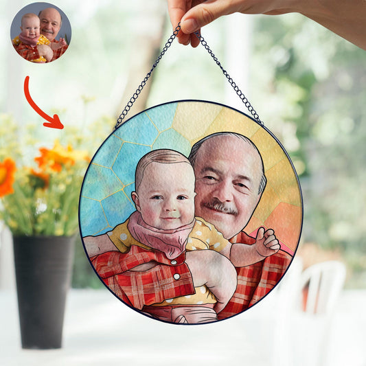 Custom Photo Stained Glass Gift for Grandpa, New Dad Gift, Custom Dad Photo Stained Glass Suncatcher, Fathers Day Gift for Dad, Dad Birthday (Sun-127)