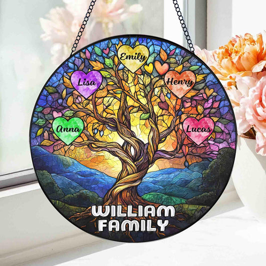 Personalized Family Tree Glass Suncatcher, Stained Glass Tree of Life, Family Names Glass Suncatcher, Family Keepsake, Family Stained Glass Window Decor (Sun-132)