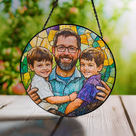 Personalized Father's Day Gift For Dad, Custom Photo Portrait Stained Glass Suncatcher, Custom Picture Family Window Hanging Gift For Papav (Sun-120)