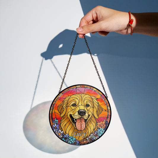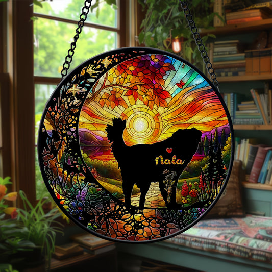 Personalized Dog Portrait Glass Suncatcher with Pet Name – Custom Stained Glass Style Window Hanging for Dog Lovers & Memorial Gift (Sun-81)