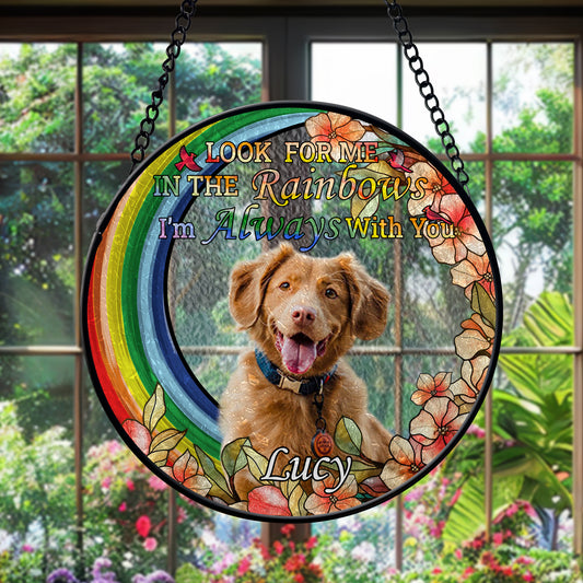Personalized Rainbow Bridge Pet Memorial Glass Suncatcher – Custom Photo Keepsake for Loss of Dog or Cat (Sun-93)