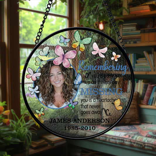 Personalized Memorial Glass Suncatcher with Photo and Butterflies – In Loving Memory Hanging Ornament for Loss of Loved One (Sun-92)
