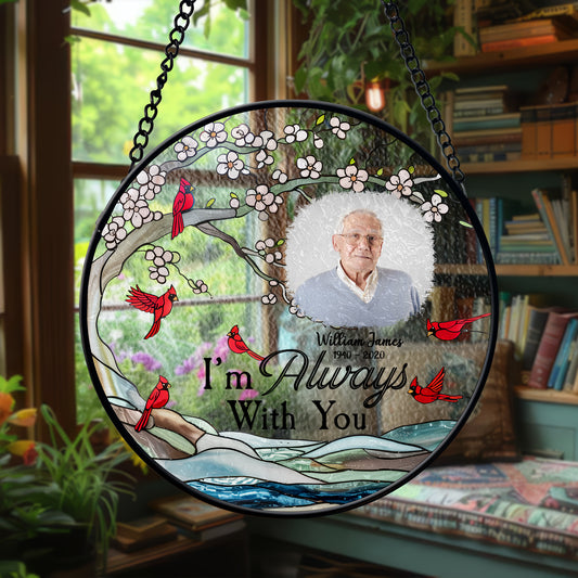 Personalized Glass Suncatcher for Windows – Memorial Cardinal Ornament with Name, Dates & Photo (Sun-95)