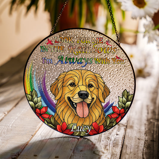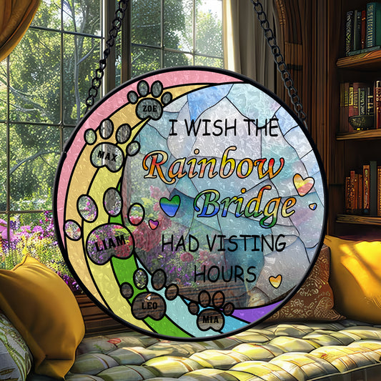 Personalized Glass Suncatcher for Pet Remembrance – Rainbow Bridge Window Hanging with Name and Optional Message – Beautiful Pet Tribute Gift (Sun-87)