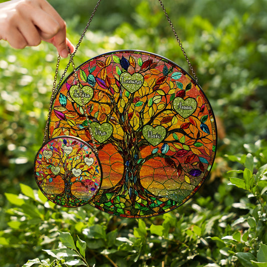 Personalized Family Tree Stained Glass Suncatcher – Custom Names Gift for Mom, Grandma or Nana – Window Hanging Home Decor (Sun-79)