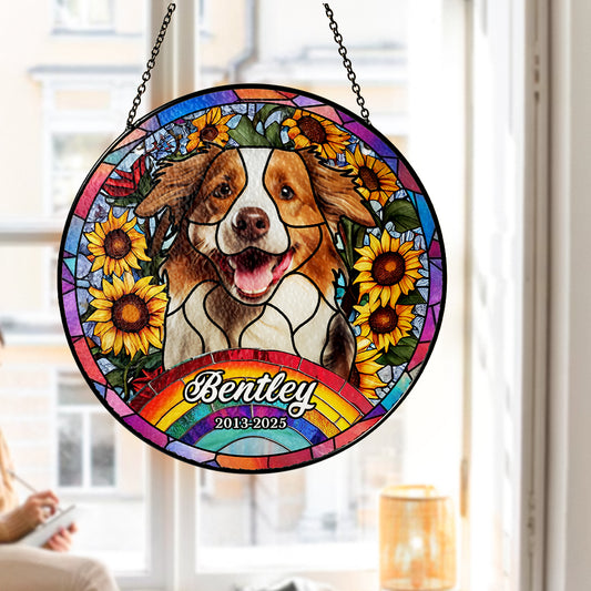 Custom Dog Portrait Glass Suncatcher, Pet Memorial Stained Glass Gift, Personalized Dog Window Art, Handmade Pet Loss Keepsake (Sun-70)