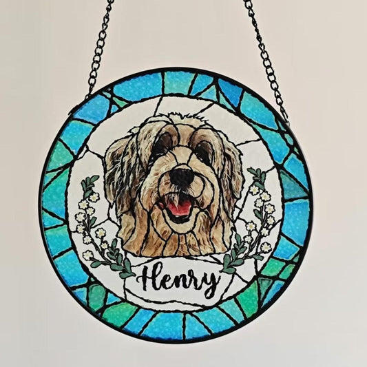 Custom Dog Portrait Stained Glass Suncatcher, Stained Glass Dog Memorial, Pet Memorial Gift, Custom Dog Portrait from Photo, Window Hangings (Sun-62)