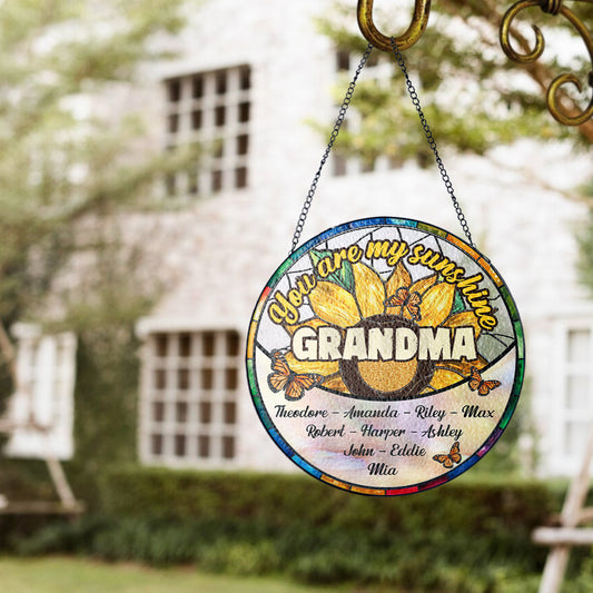 Personalized "You Are My Sunshine" Glass Suncatcher Ornament for Mom, Customizable Sunflower Suncatcher (Sun-27)