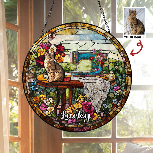 Personalized Stained Glass Suncatcher with Custom Cat Portrait – A Unique and Beautiful Decoration for Cat Lovers (Sun-13)