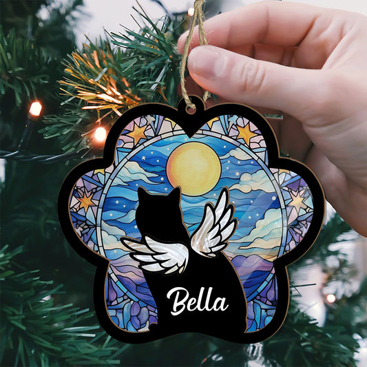 Personalized Cat Loss Sympathy Glass Suncatcher, Beautiful Memorial Gift for Grieving Pet Owners (H-Sun-01)