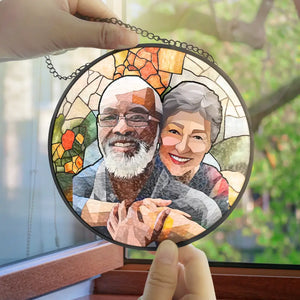 Custom Stained Glass Suncatcher - Family Photo Portrait for Mom and Grandma (Sun-20)