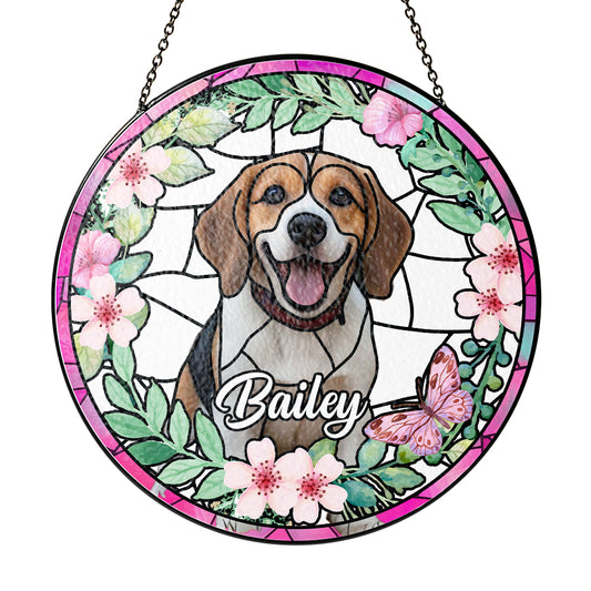 Personalized Stained Glass Suncatcher with Pet Photo and Name – A Memorial Window Ornament for Dog or Cat Loss, Thoughtful Gift for Pet Lovers (Sun-28)