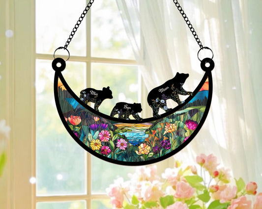 Custom Mama Bear Acrylic Suncatcher, Custom Bear Family Suncatcher, Mom Birthday Gift, Gift For Mom, Bear Gifts, Window Hanging Suncatcher, Mothers Day Gift (H-Sun-04)
