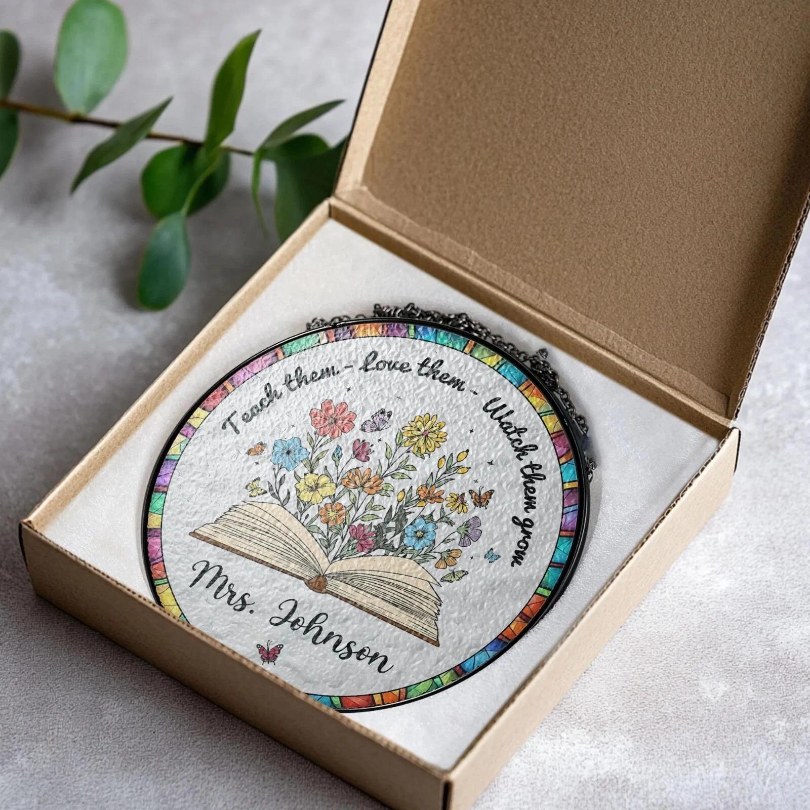 ππΈ Custom Book & Flower Teacher Stained Glass Suncatcher β Personalized Teacher Appreciation Gift π