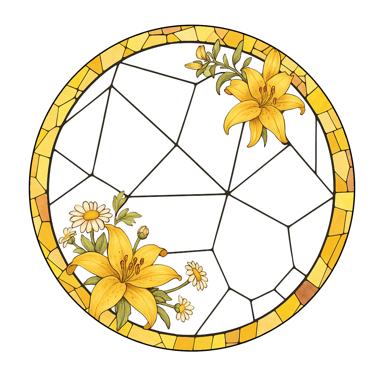 Custom Pet Glass Suncatcher β Personalized Dog Portrait with Yellow Lilies and Daisies β Stained Glass Style Window Hanging Gift (Sun-104)