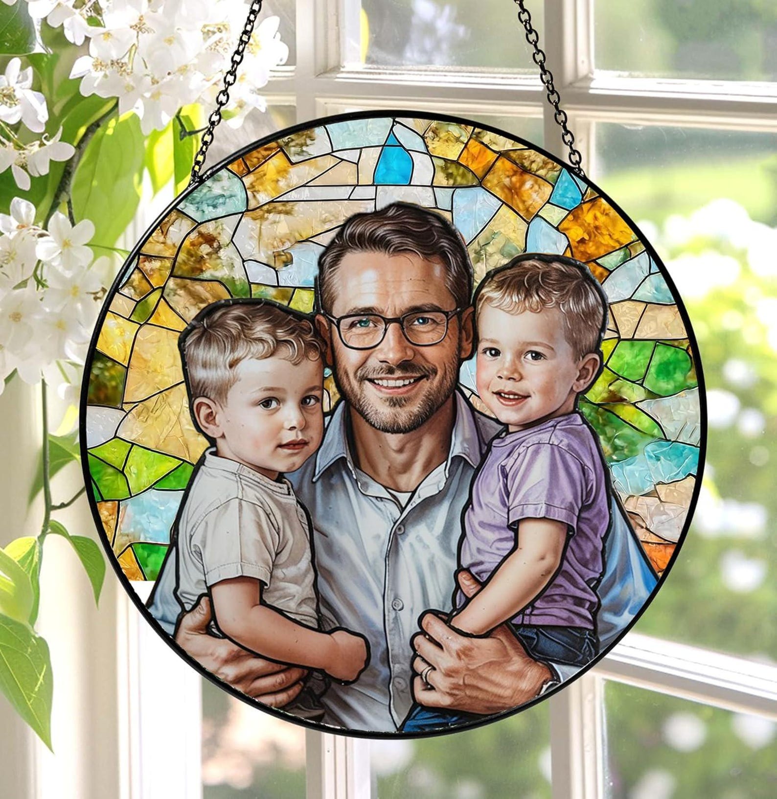 Celebrate Dad or Grandpa with a one-of-a-kind stained glass-style photo suncatcher – a heartfelt gift that turns cherished memories into glowing window art.