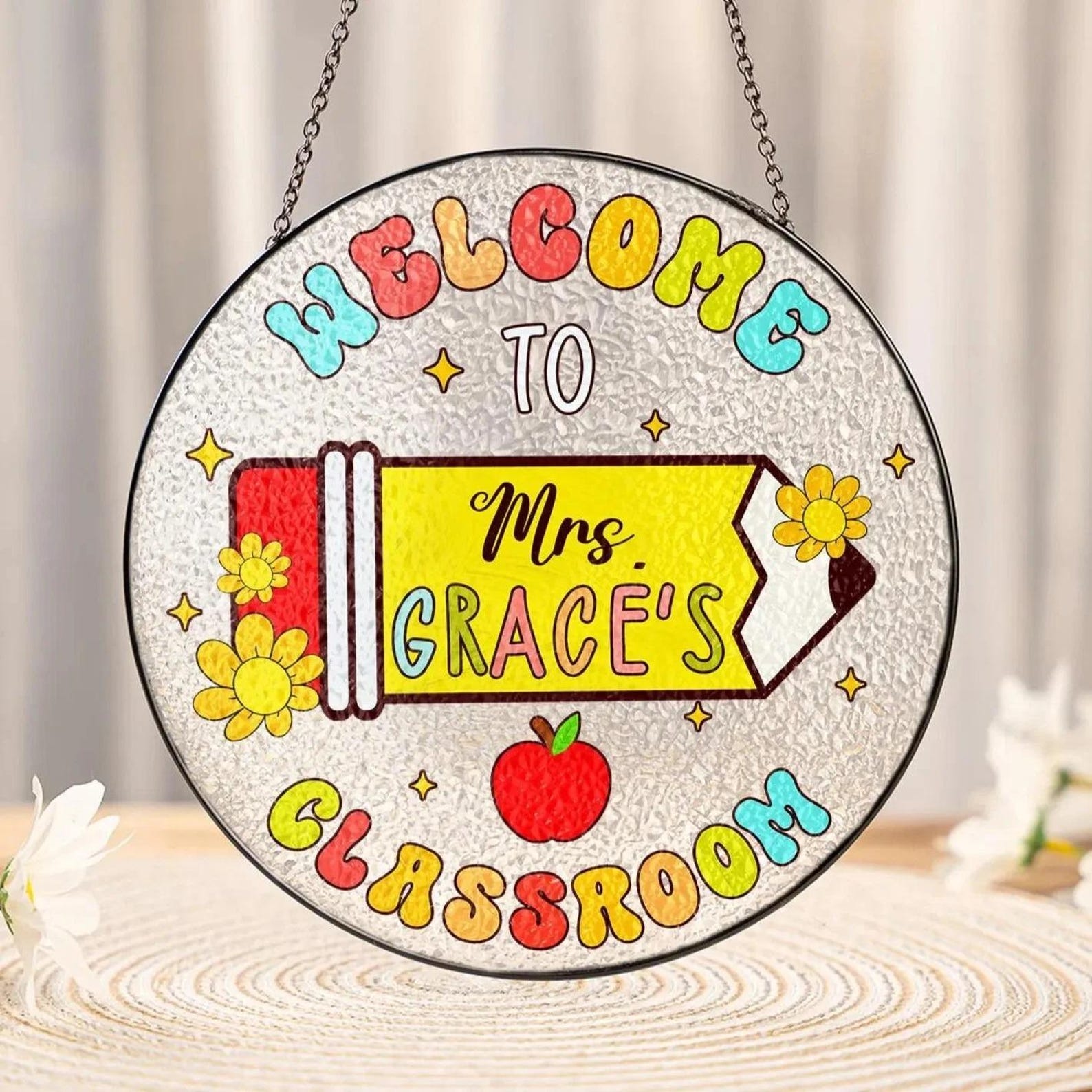 Personalized Teacher Stained Glass Suncatcher, Custom Name Sign Rainbow Pencil Bright, Classroom Decor, Back To School, Gift For Her (Sun-160)